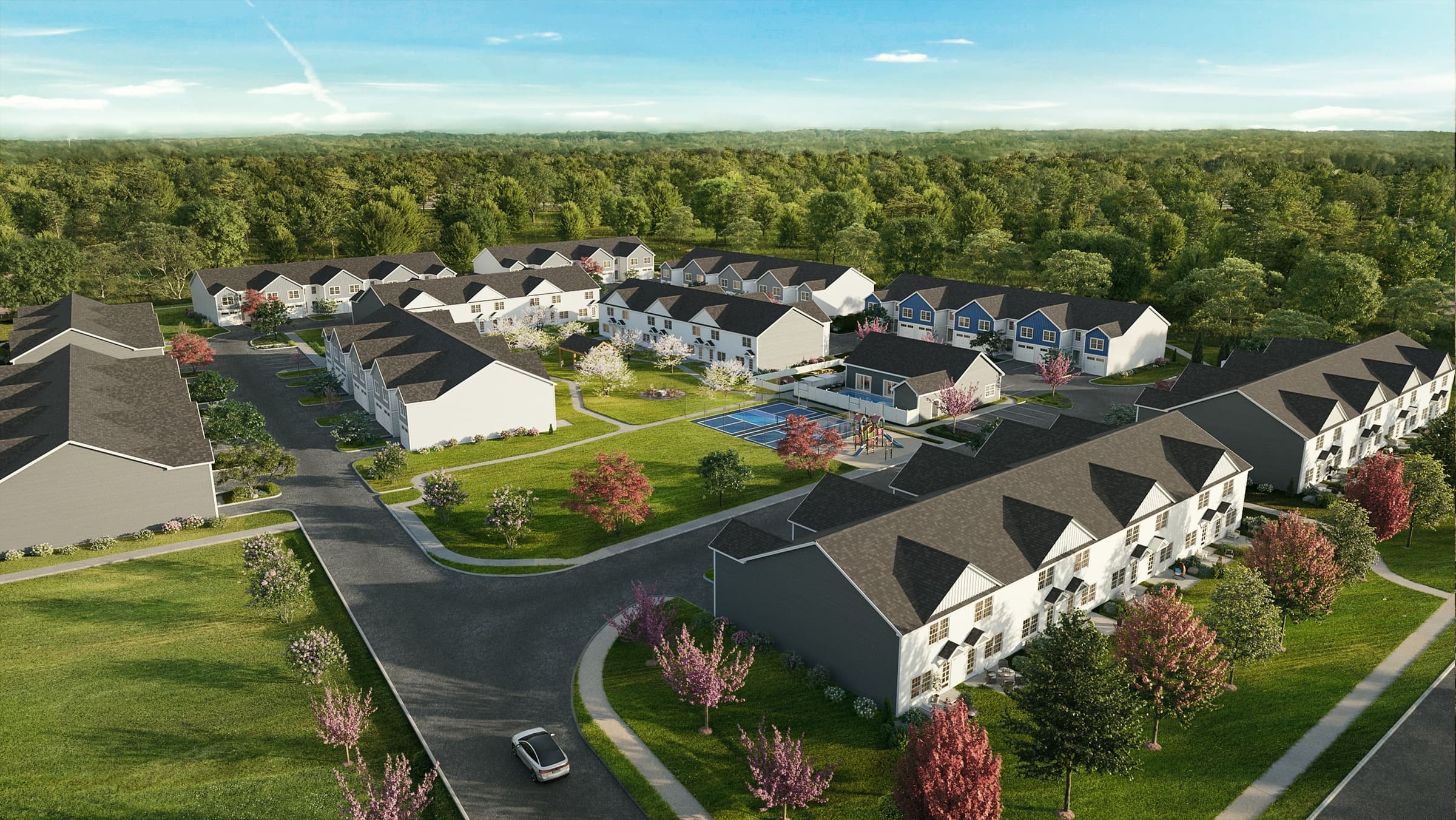Introducing a new neighborhood of three-bedroom townhomes for sale, set among eight acres of lush green space with everything you need to unwind, stay active, or simply enjoy being home.